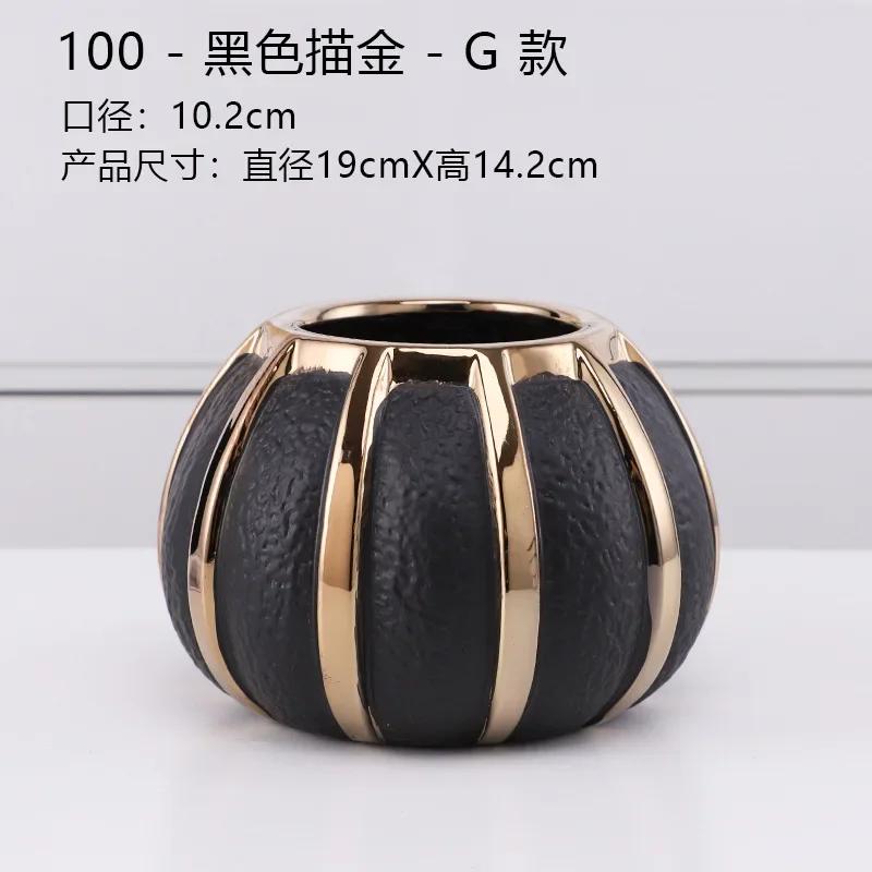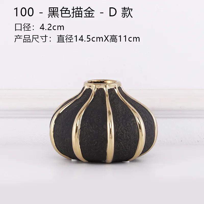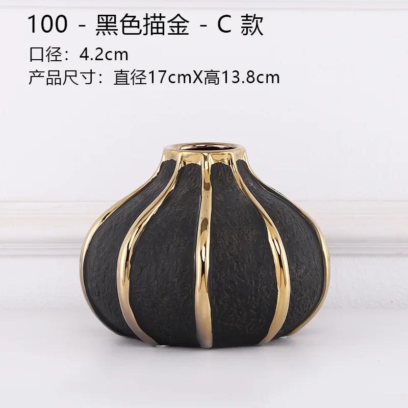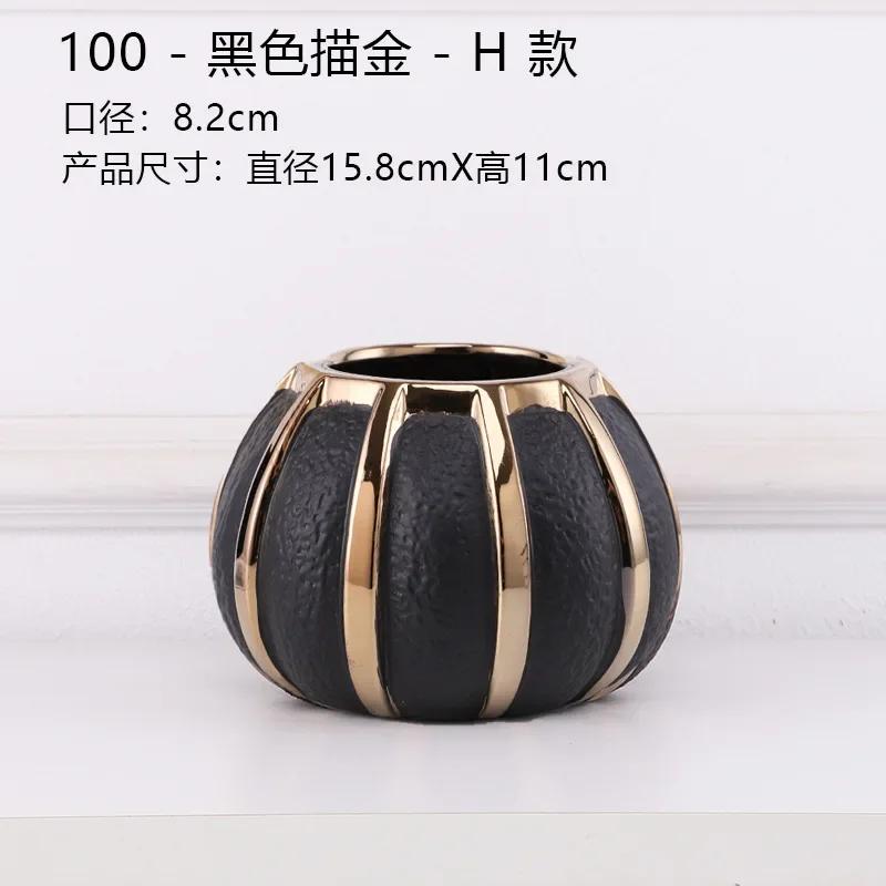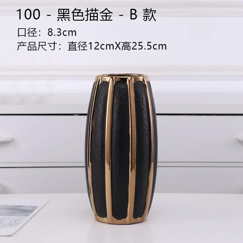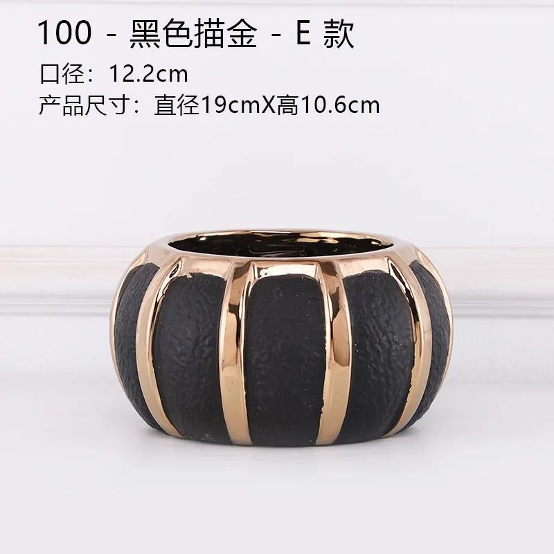 Креативные черные керамические вазы с золотыми полосками Современные цветочные горшки Декоративная цветочная композиция Украшение стола Позолоченные вазы