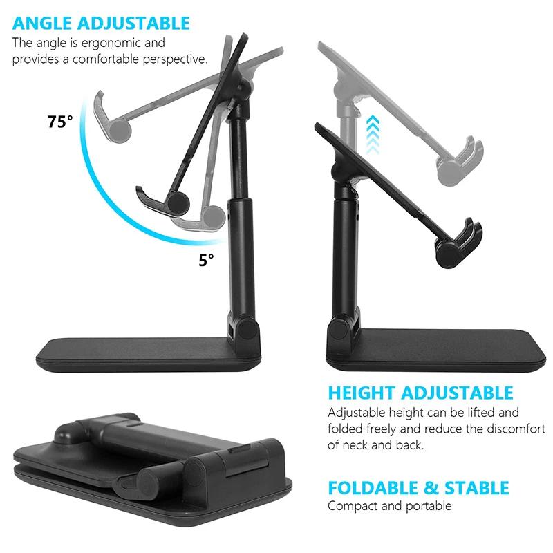 Складная настольная подставка для мобильного телефона с регулируемым углом наклона и высотой, а также силиконовой прокладкой для подъема и опускания подставки для телефона