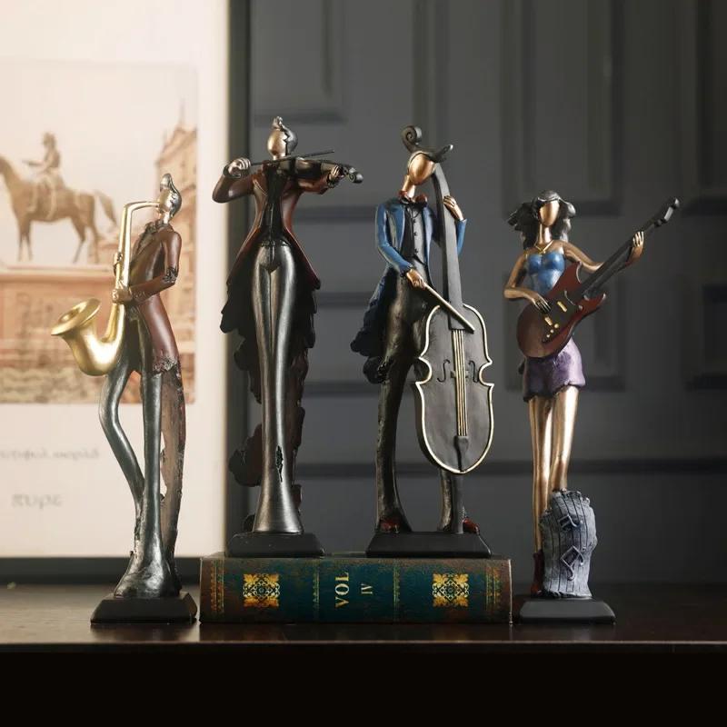 Винтаж Играть на музыкальном инструменте Группа Украшения Искусство Персонаж Модель Статуя Творчество Фигурки Для Интерьера Аксессуары Для Стола Ремесла