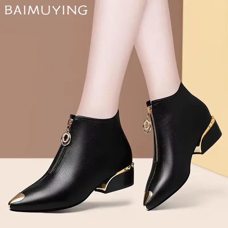 Роскошные женские ботильоны с острым носком, массивные кожаные туфли на молнии, женские зимние туфли-лодочки 2025 года, модные зимние туфли-лодочки Chelsea Botas Mujer