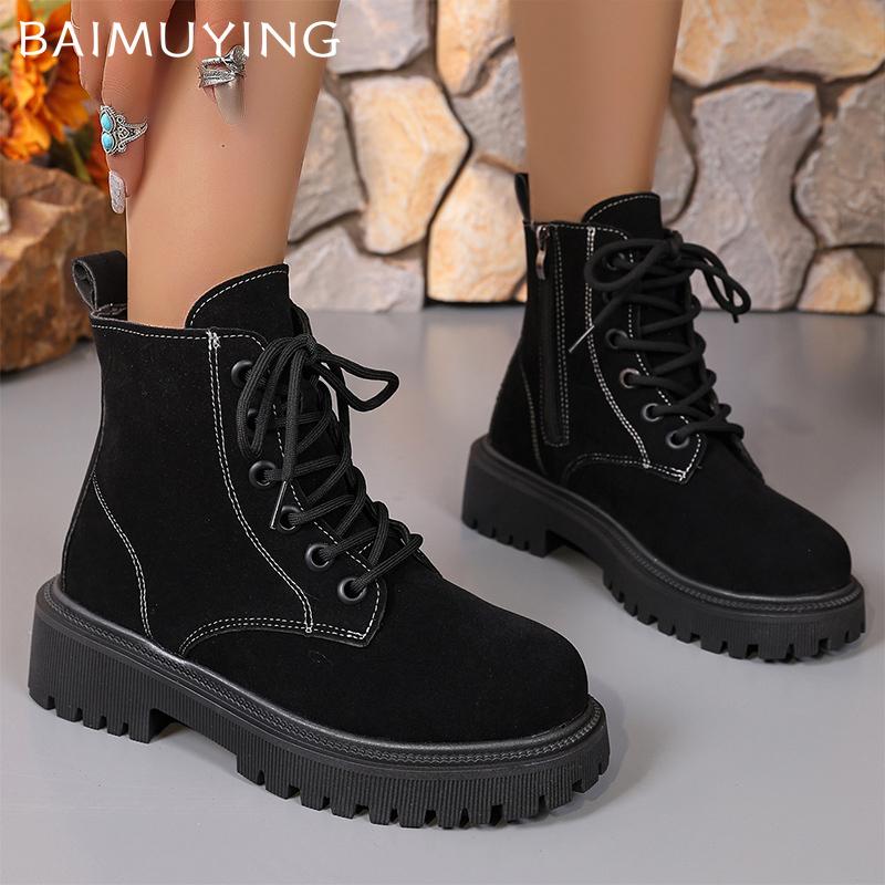 Замшевые толстые женские ботильоны на шнуровке в стиле ретро на среднем каблуке, модные новые дизайнерские гладиаторские зимние мотоциклетные ботинки 2025 года