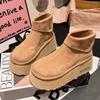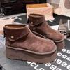 Замшевые женские зимние ботильоны на платформе, дизайнерские короткие плюшевые туфли на среднем каблуке, новый бренд 2025 года, теплые, удобные, зимние ботинки для женщин