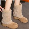 Меховая платформа Женские ботильоны Замшевые Средний каблук Модная обувь Женская 2025 Тренд Зимняя Повседневная Удобная Теплая Снежные ботинки Женские