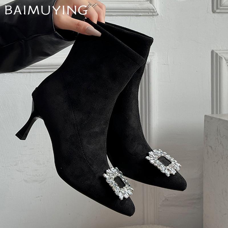Женские зимние ботильоны с острым носком из замши на среднем каблуке, сексуальная обувь, модные зимние ботинки челси 2024 года, трендовые туфли-лодочки Botas Mujer