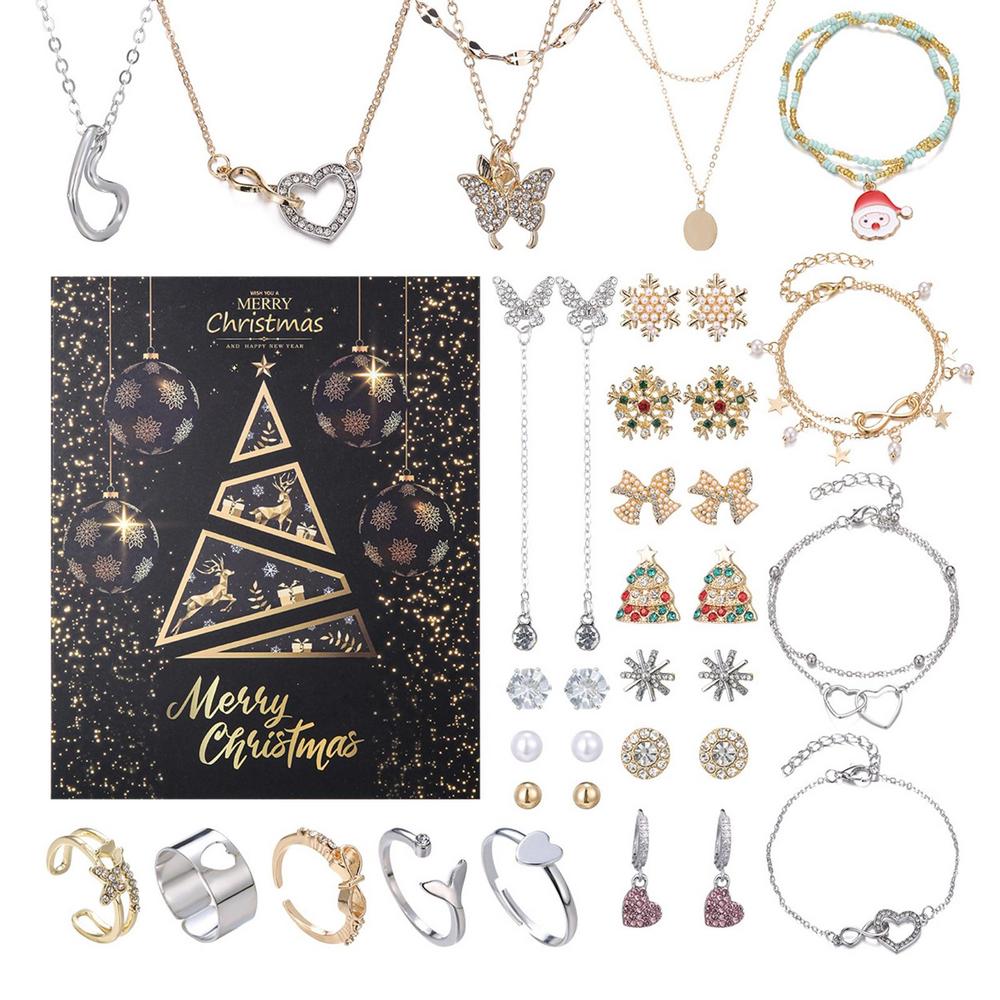 Ювелирные изделия Адвент-календари Взрослые Женщины Браслет Ожерелье Календарь обратного отсчета 24 дня Адвент-календари 2024 Рождественские вечеринки Кольца