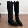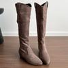 Замшевые женские высокие сапоги с острым носком на низком каблуке, сексуальная обувь для женщин, тренд 2025, зимняя мода, дизайнерское платье, элегантные Zapatos De Mujer