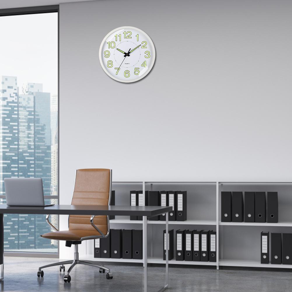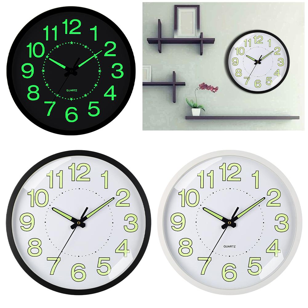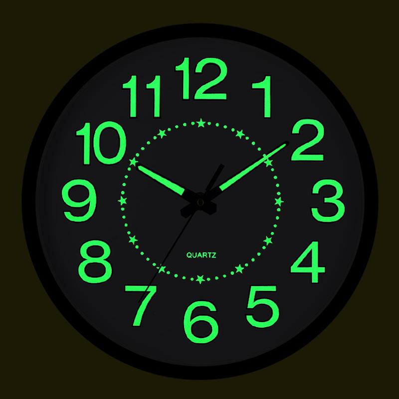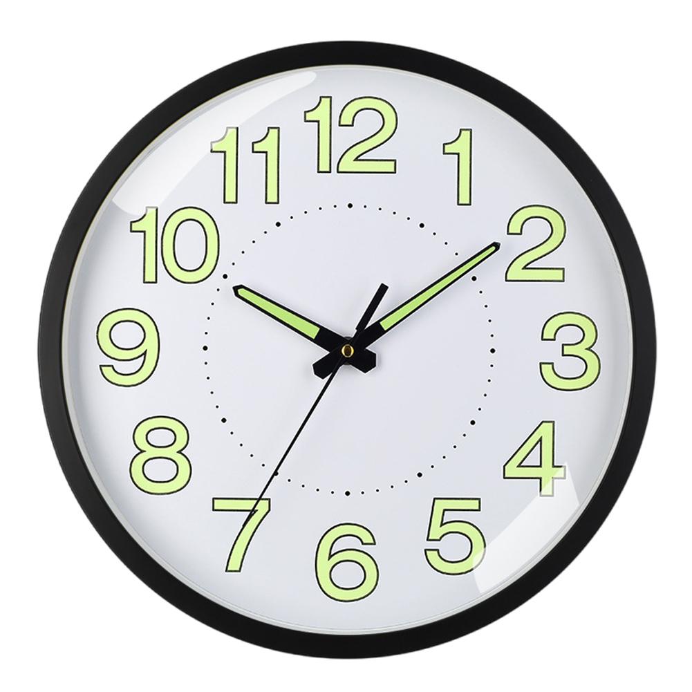 Круглые настенные часы 12 дюймов Светящиеся в темноте Люминесцентные настенные часы Бесшумные Поглощающие энергию цифры и стрелки для спальни, гостиной