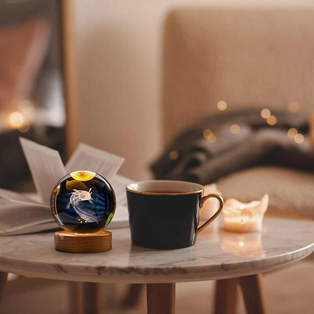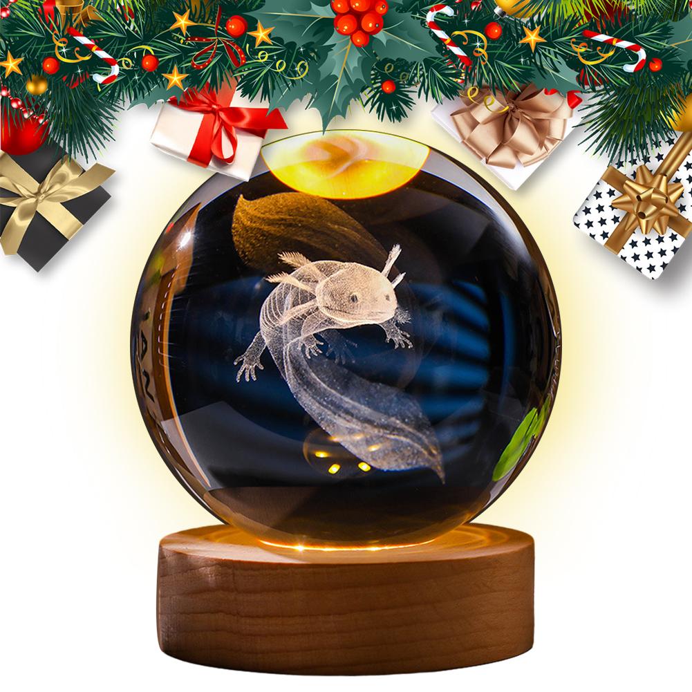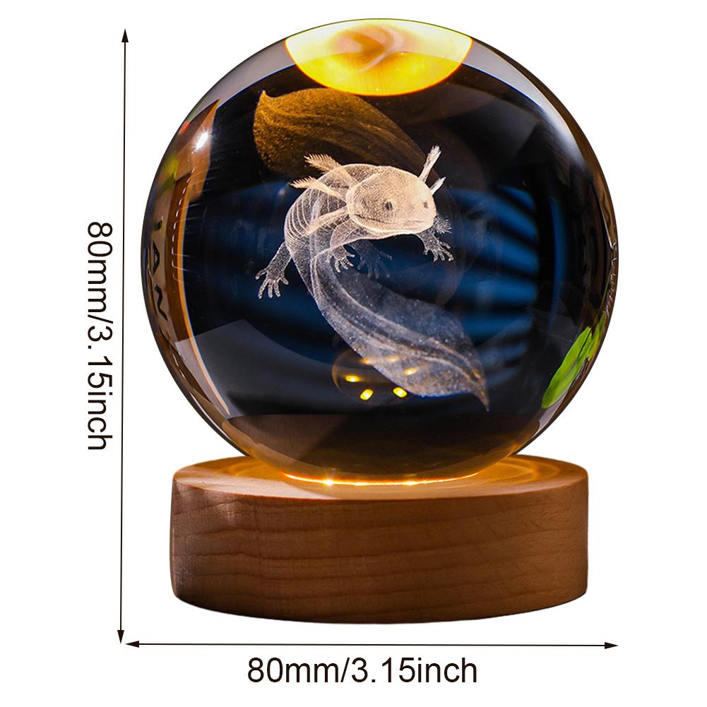 3D хрустальные шары с деревянной основой, лампа в виде хрустального шара Аксолотль, креативный подарок на день рождения для друзей