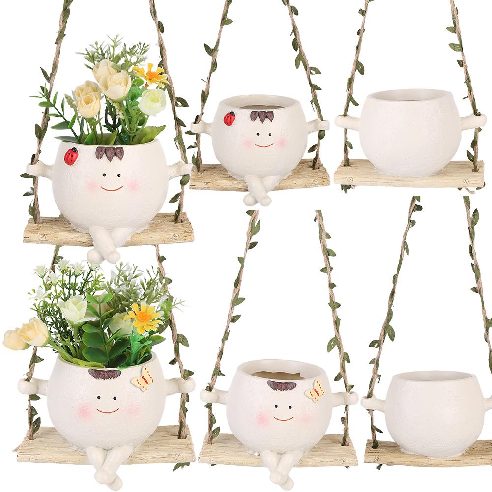 Подвесные цветочные горшки Swing Face, симпатичные цветочные горшки, подвесные цветочные горшки для комнатных и уличных растений, для растений с ниткой жемчуга