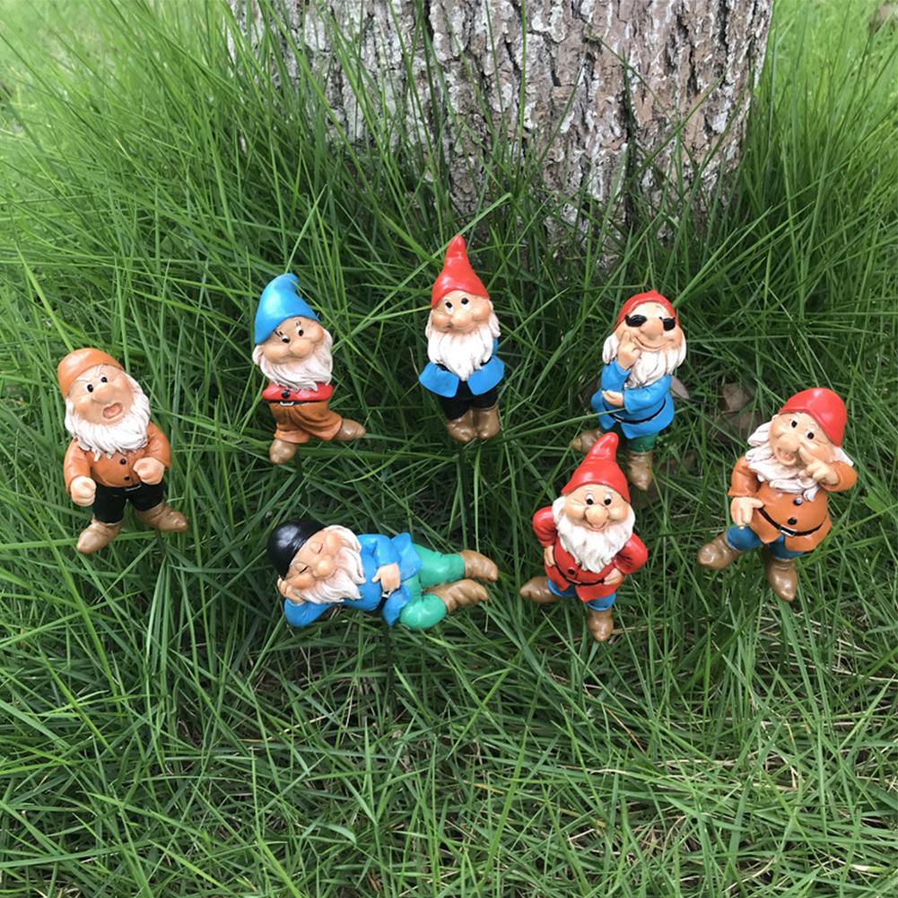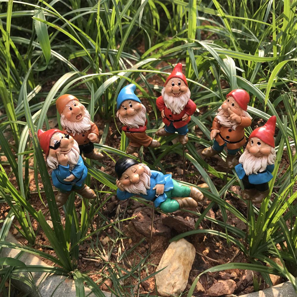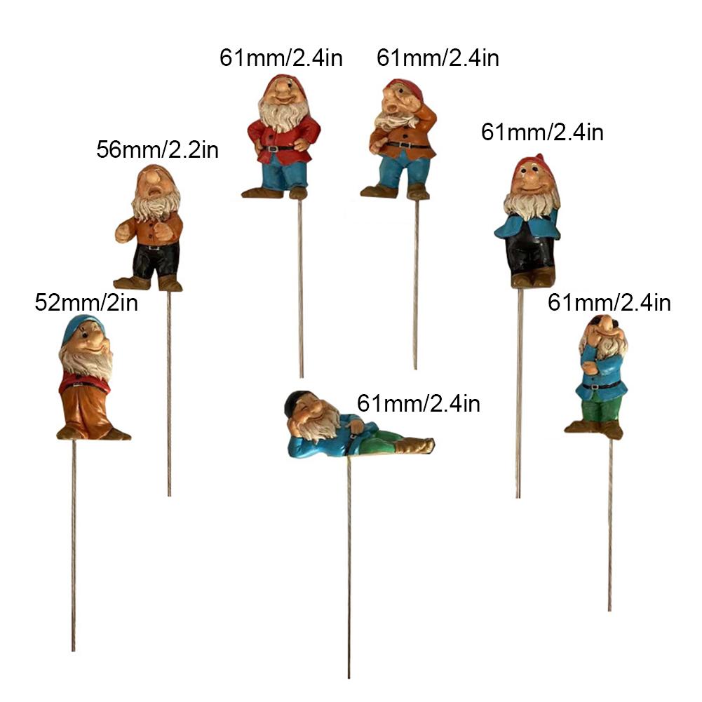 7 шт. Статуэтки садового гнома, мини-фигурки гнома, декоративный смоляной гном, миниатюрный милый садовый гном, колышек для наружного декора