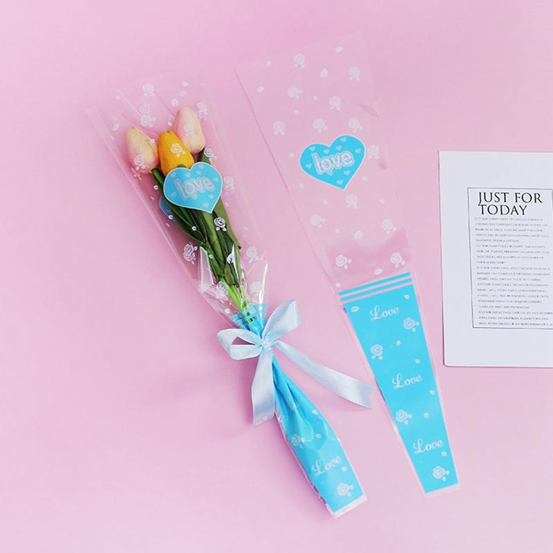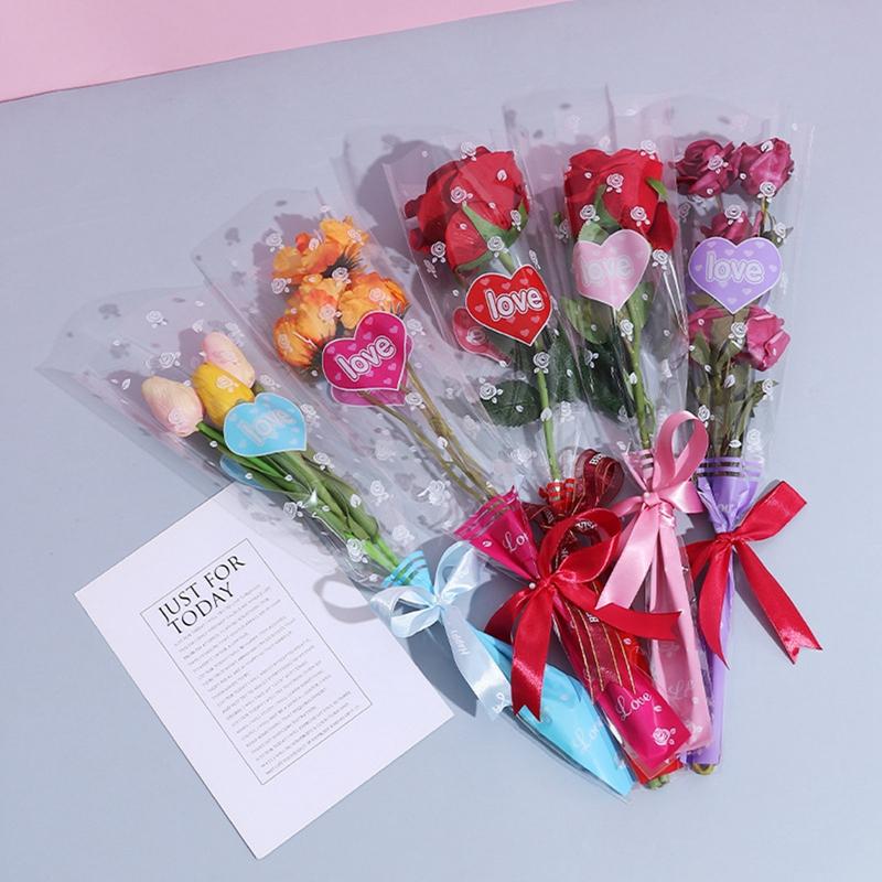 50 шт. Прозрачный пакет для роз, одиночный цветок, букет, упаковочная бумага, пластиковый пакет Opp, цветочные упаковочные материалы, аксессуар