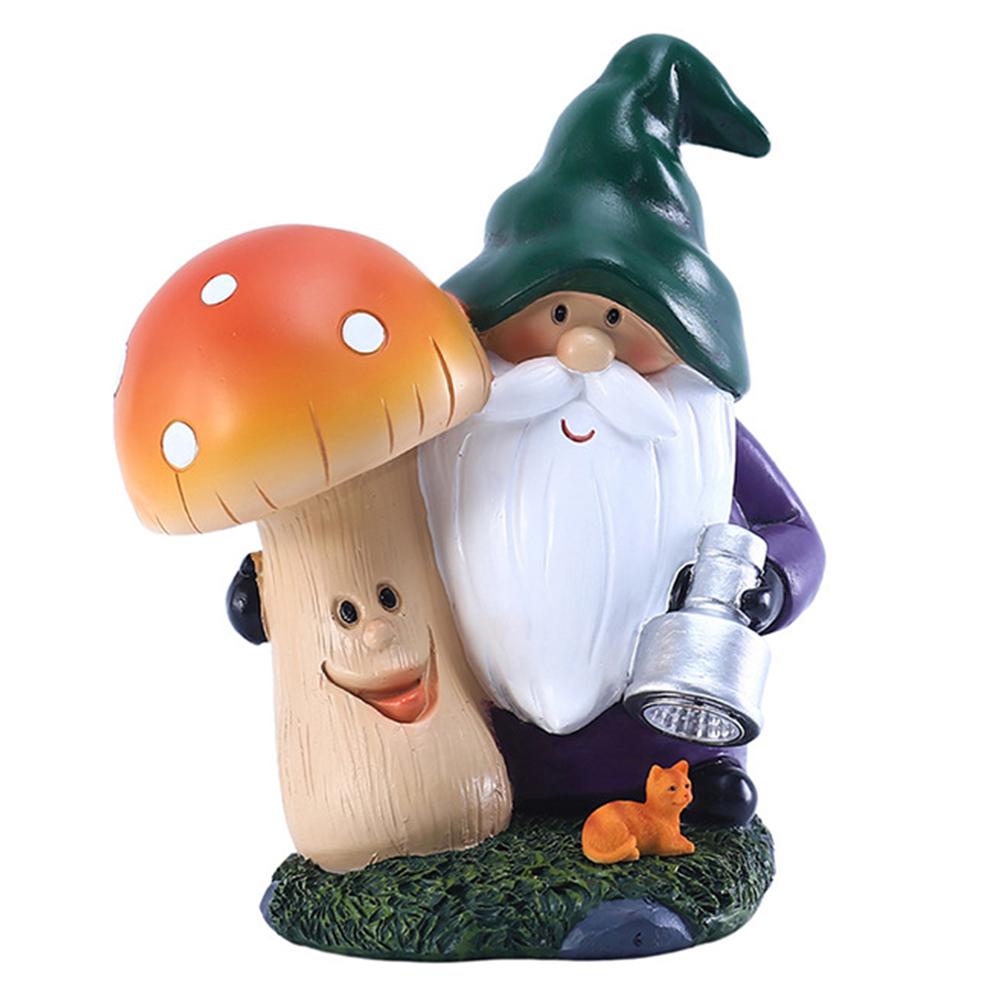 Статуэтка грибного гнома на солнечной батарее, забавное украшение из смолы в виде гнома, креативная светящаяся статуэтка грибного гнома, украшение для двора