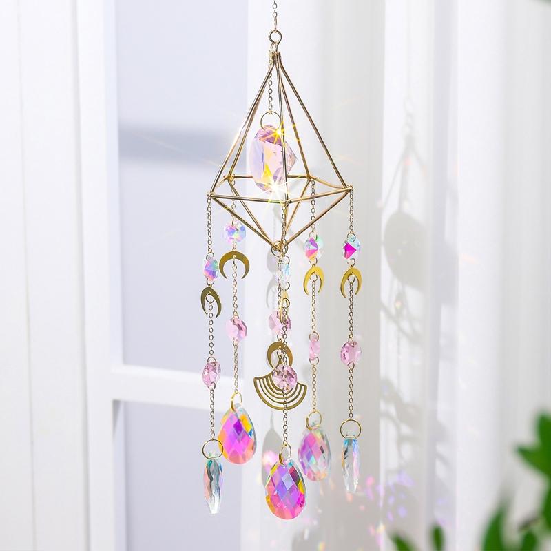 Кристаллический колокольчик ветра предотвращает облачность и потускнение, отражает различные световые эффекты, натуральный лунный ловец снов, украшение в виде ветряного колокольчика