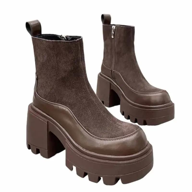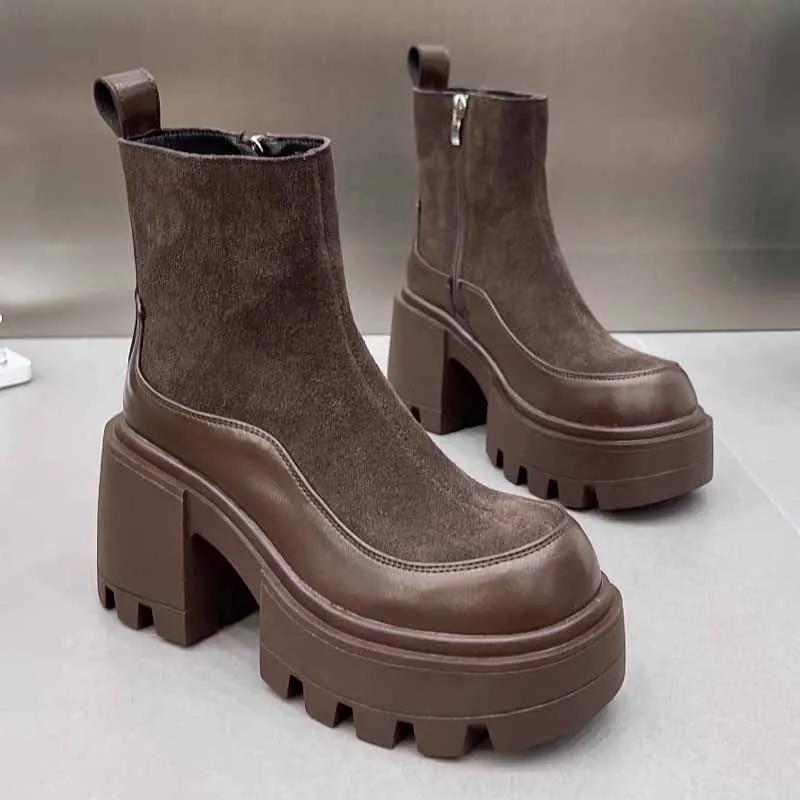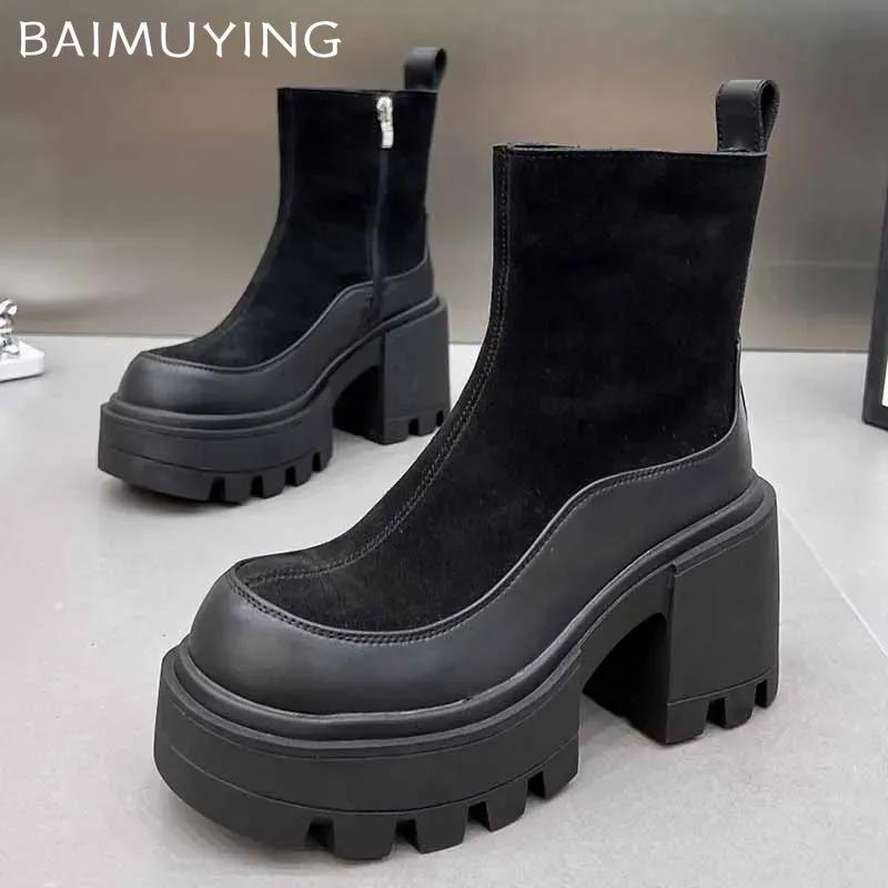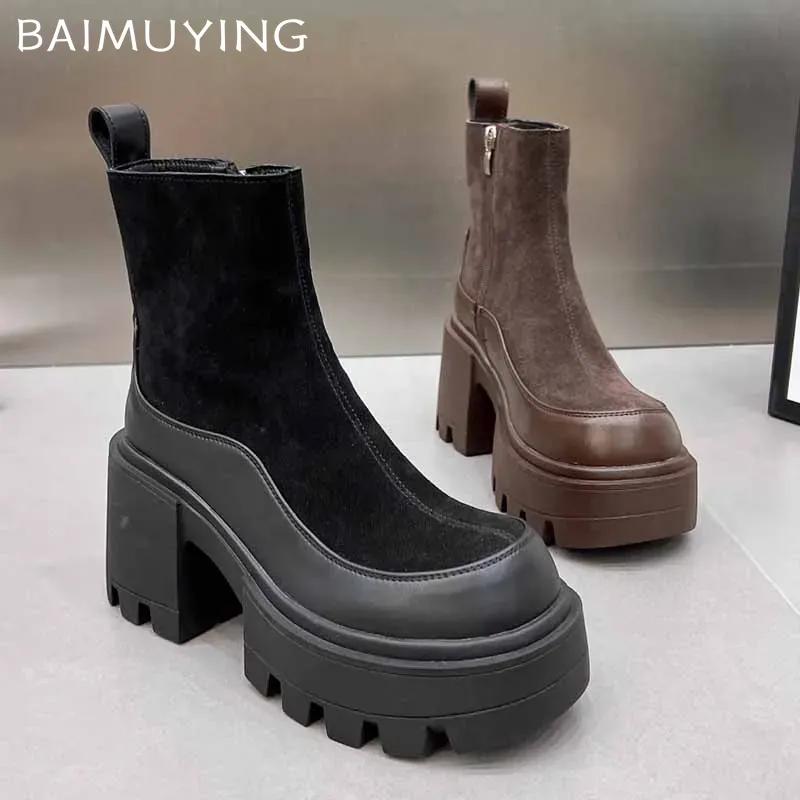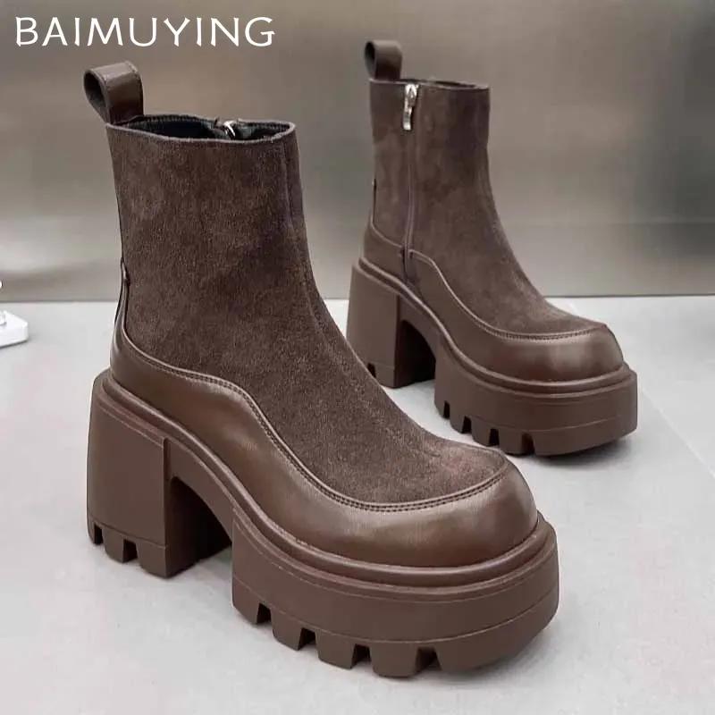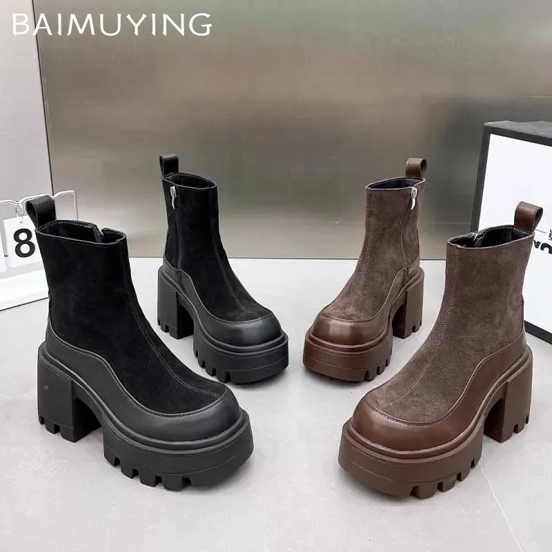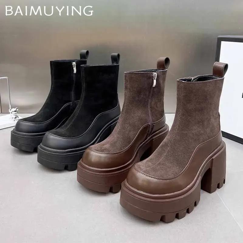 Ботильоны на платформе для снега для женщин, замшевые туфли на высоком каблуке, женская зимняя тенденция 2025 года, готический бренд, гладиатор, мотоциклетные ботинки для женщин