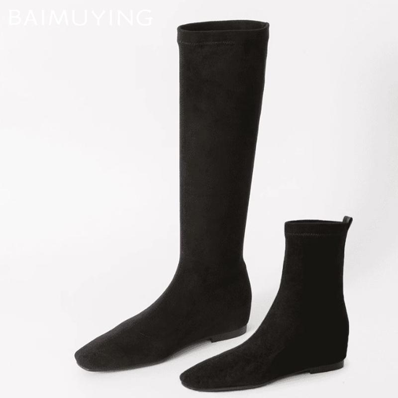 Замшевые балетки женские высокие сапоги дизайнерские туфли до колена в стиле ретро зимние новые брендовые 2025 трендовые готические классические мотоциклетные ботинки женские — купить товар онлайн с бесплатной доставкой по всему миру!