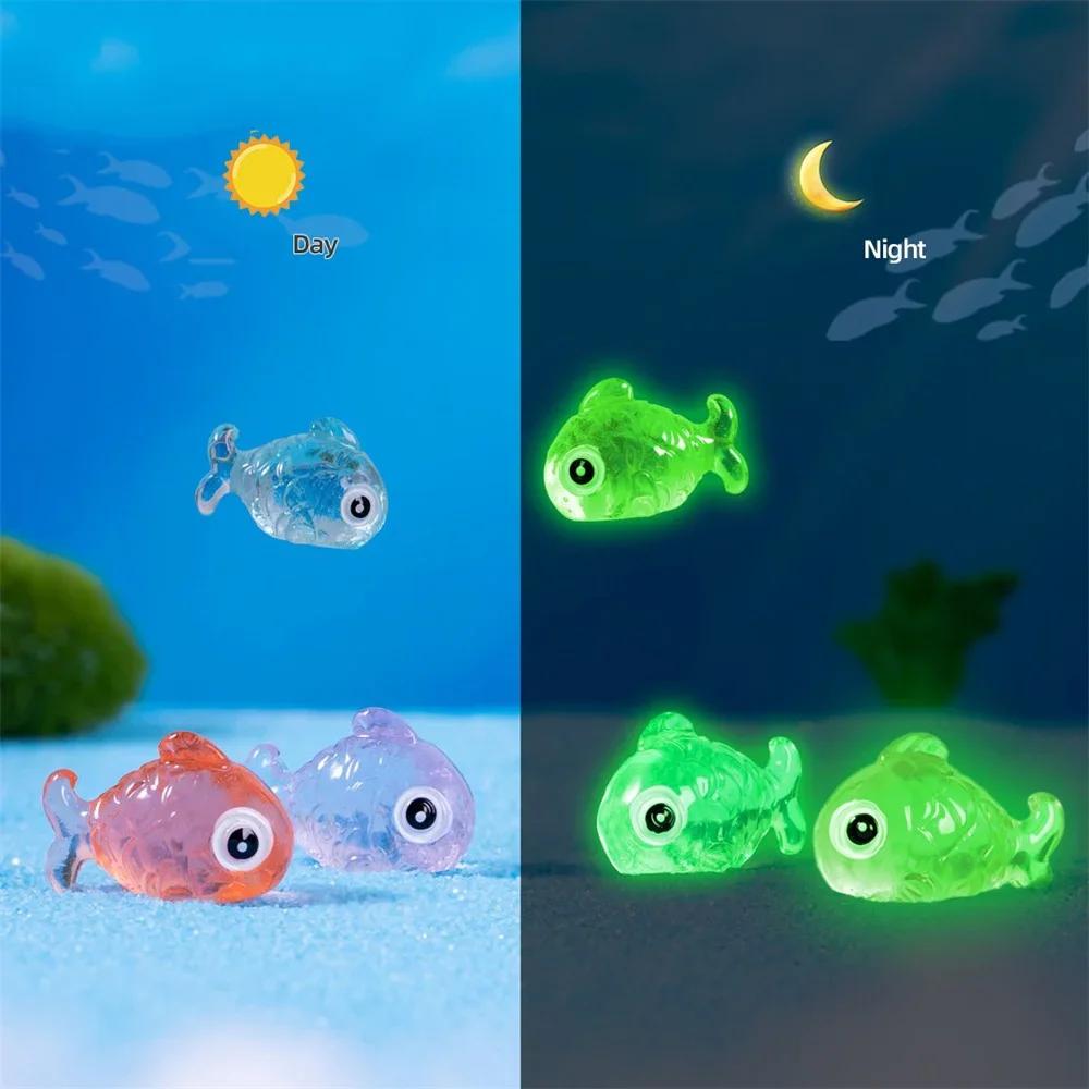 10 шт. Мини-светящиеся рыбки, украшения из смолы, мох, сад, фея, кукольный домик, украшения для аквариума, микропейзаж, настольный декор