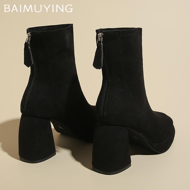 Замшевые массивные женские ботильоны на высоком каблуке в стиле ретро, новый бренд 2024 года, зимние дизайнерские туфли-лодочки, классические гладиаторские туфли-лодочки Mujer