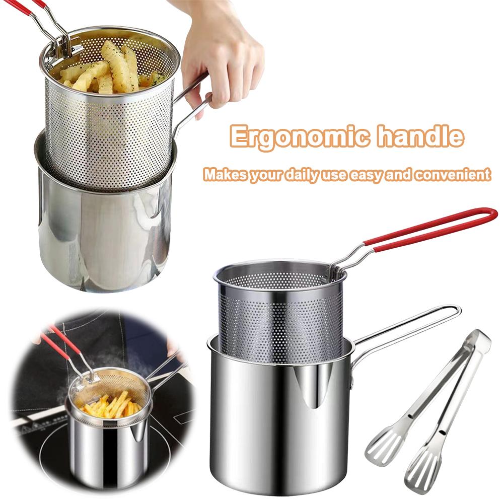 Жаровня с ситом и щипцами для еды, маленькая глубокая сковорода темпура из нержавеющей стали, фритюрница, сковорода для жарки курицы, инструменты для приготовления жареной курицы — купить товар онлайн с бесплатной доставкой до всему миру!
