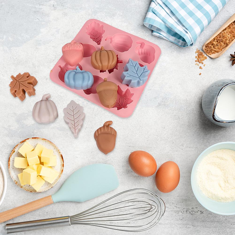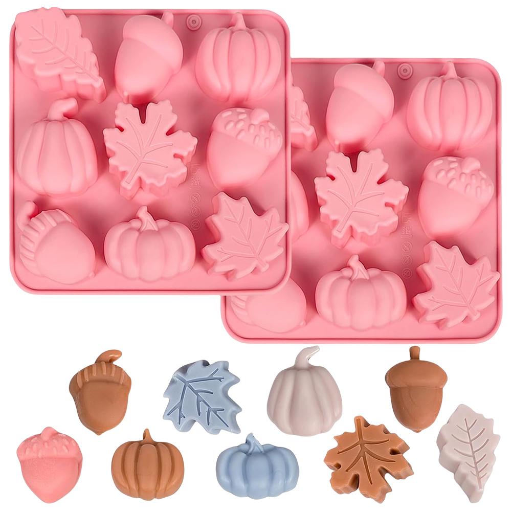 2 осенних силиконовых форм в форме листьев тыквы и желудей, осенние формы для выпечки, форма для шоколада в виде тыквы, самодельные сахарные шоколадные свечи