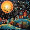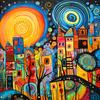 5D DIY Полная круглая дрель Алмазная картина Красочный дом Абстрактная серия Декор