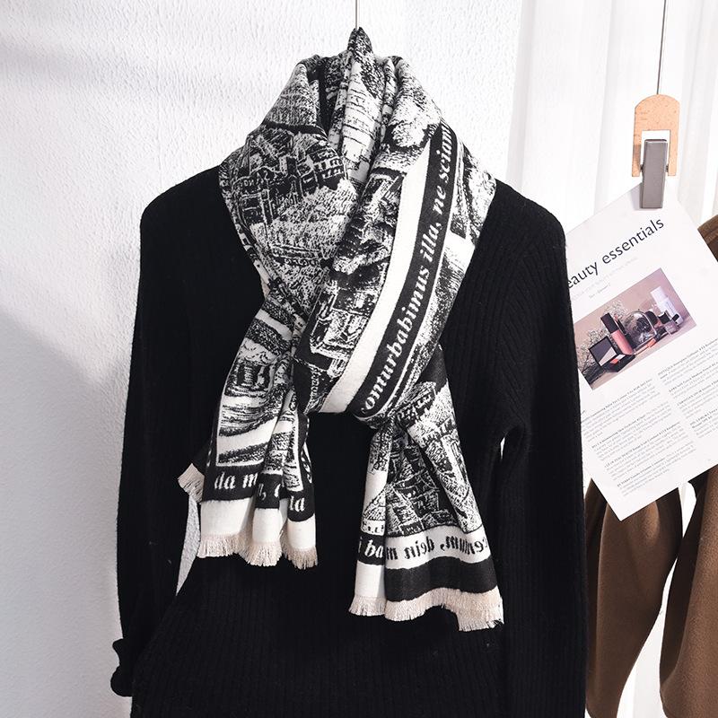 Cross-Level Fashion Roman Arena Печатный шарф Женский дизайн Sense Niche Милый крутой стиль ретро шаль