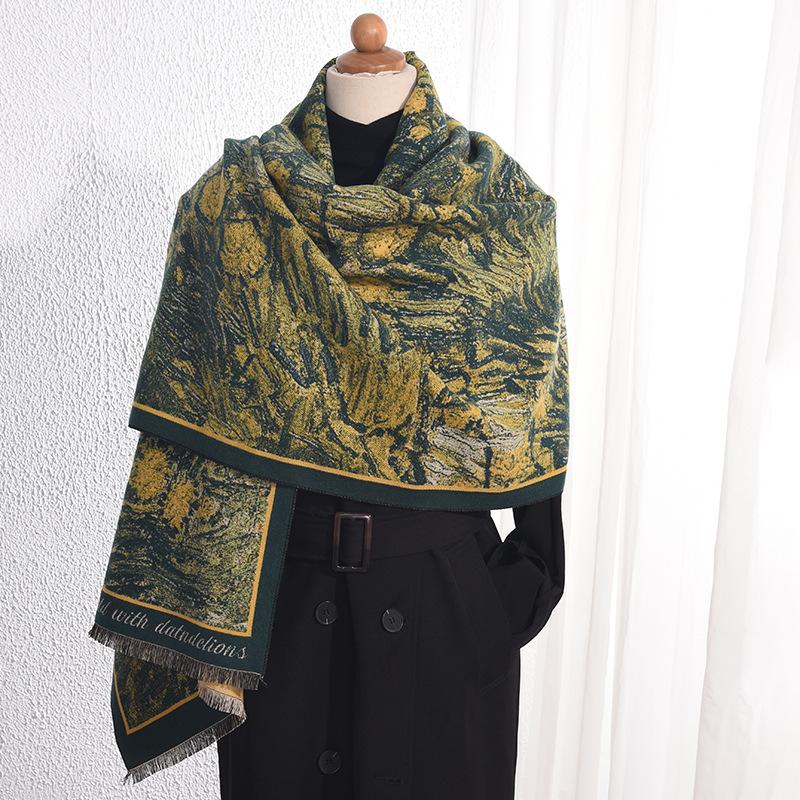 Ретро стиль масляной живописи элегантный темперамент кашемировый шарф женский дизайн чувство индивидуальности мода ниша теплый шарф