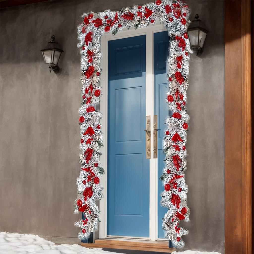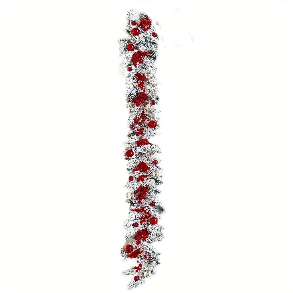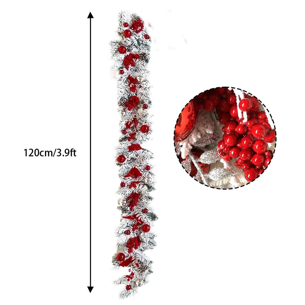 3,9-футовая рождественская гирлянда для входной двери, рождественская флокированная сосновая хвоя, красные ягоды, шишки, шары, гирлянда, украшение для рождественской вечеринки, праздничного домашнего декора