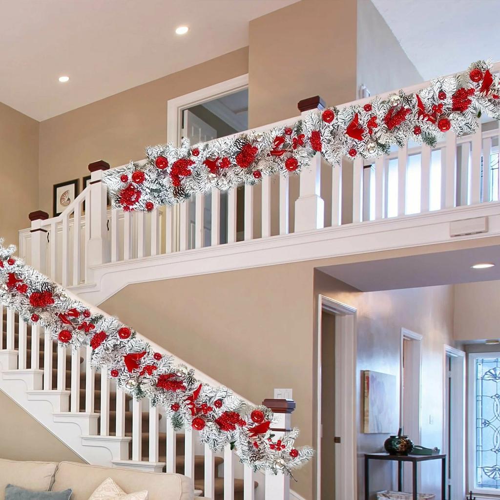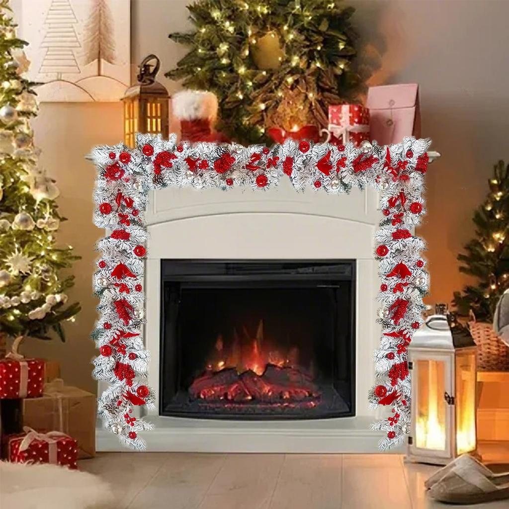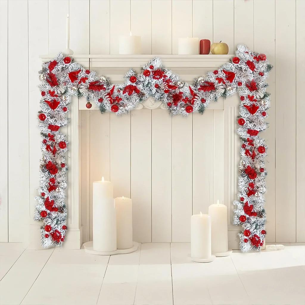 3,9-футовая рождественская гирлянда для входной двери, рождественская флокированная сосновая хвоя, красные ягоды, шишки, шары, гирлянда, украшение для рождественской вечеринки, праздничного домашнего декора