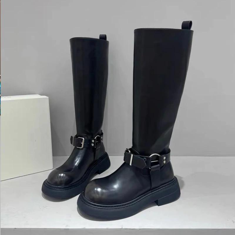 Женские высокие сапоги на платформе, кожаные туфли на плоской подошве, женские, трендовые, зимние, готические, снежные, гладиаторские, панк, до колена, мотоциклетные, ботинки женские