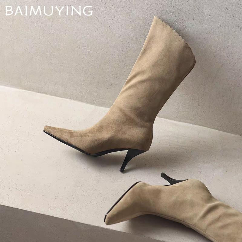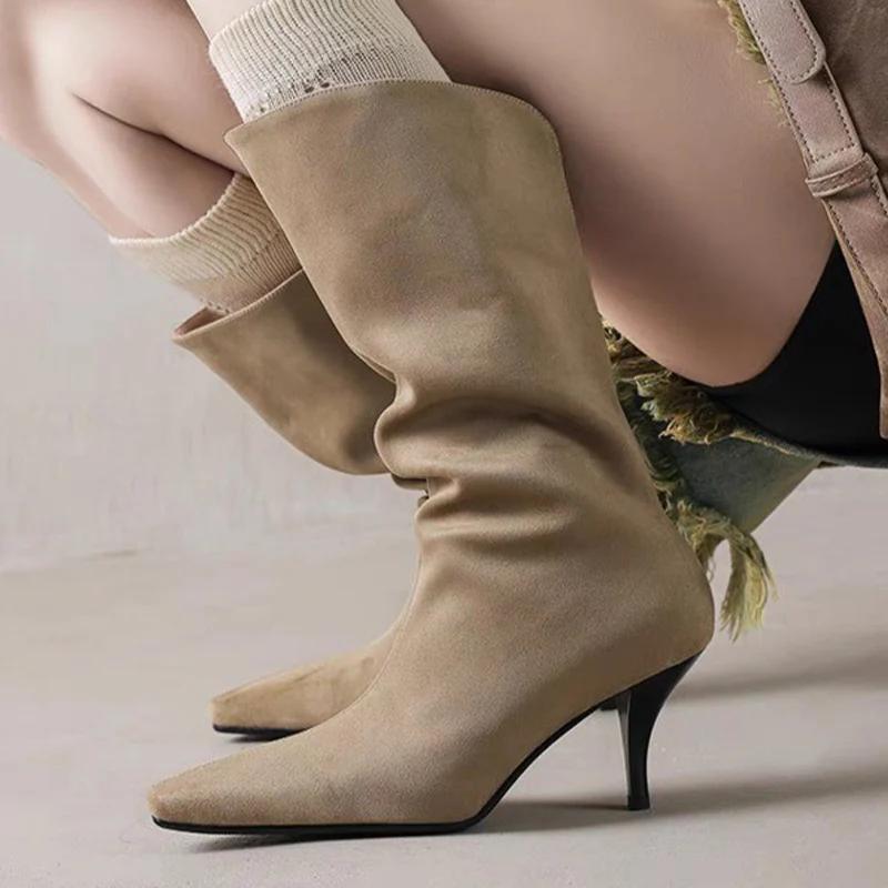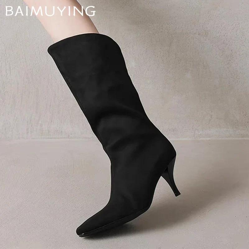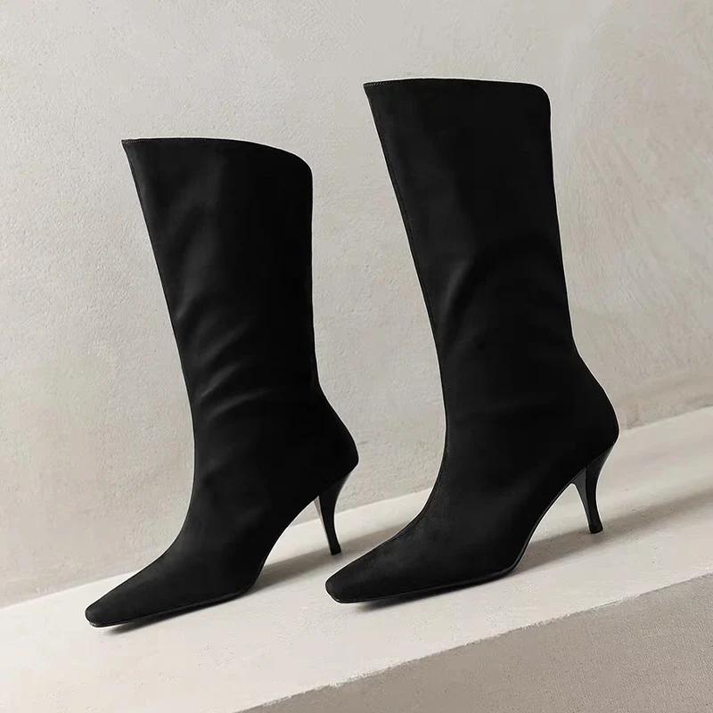Остроносые полусапожки женские туфли на высоком каблуке дизайнерский бренд зима женская 2025 трендовые ботильоны готические челси Botas De Mujer