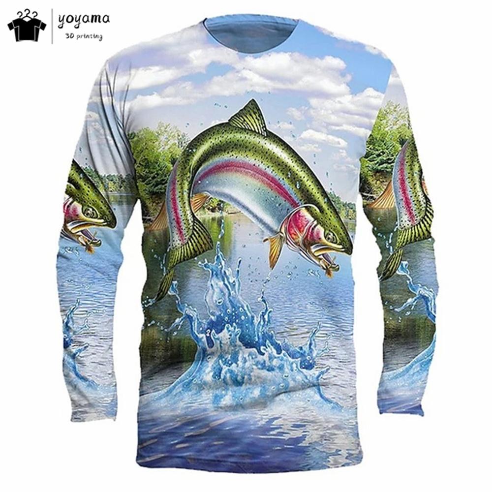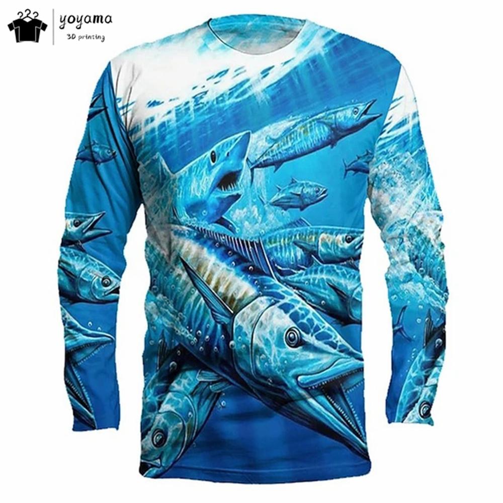 Классические футболки с принтом рыбы, графические футболки с 3D-принтом, мужская одежда, повседневная футболка для мужчин, мужской топ, мужская футболка с длинным рукавом, мужская одежда