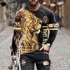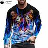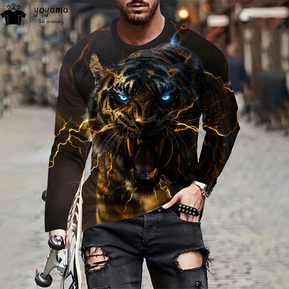 Мужская одежда с принтом тигра Повседневные свободные мужские рубашки Футболки с 3D-принтом и рисунком тигра Дышащие мужские футболки с длинным рукавом Топы
