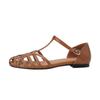 Ретро римские сандалии Baotou с ажурной подошвой, женские толстые каблуки, летняя обувь 2024 года для женщин, новые повседневные сандалии с Т-образным низом и плоской подошвой