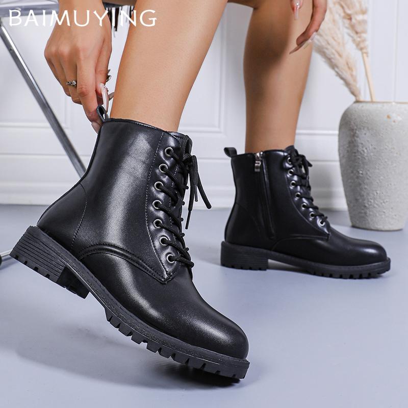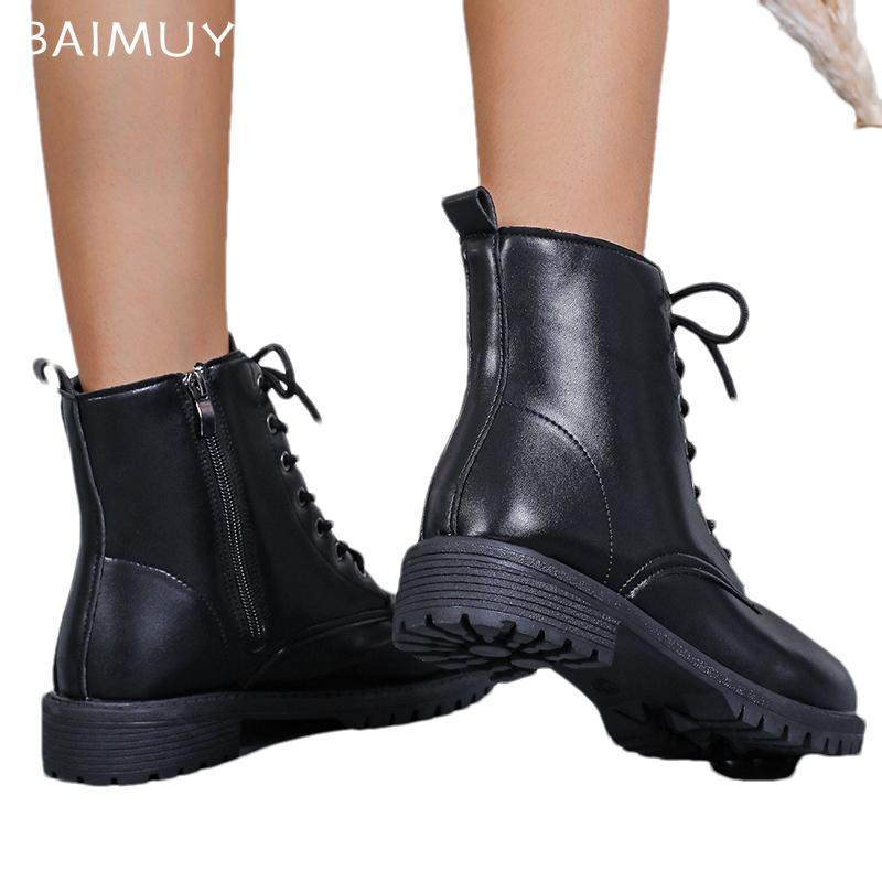 Женские ботильоны на плоской подошве Кожаные Дизайнерские Ретро Обувь На шнуровке Мотоциклетные Ботинки Тренд 2024 Зима Готика Гладиатор Женские Туфли