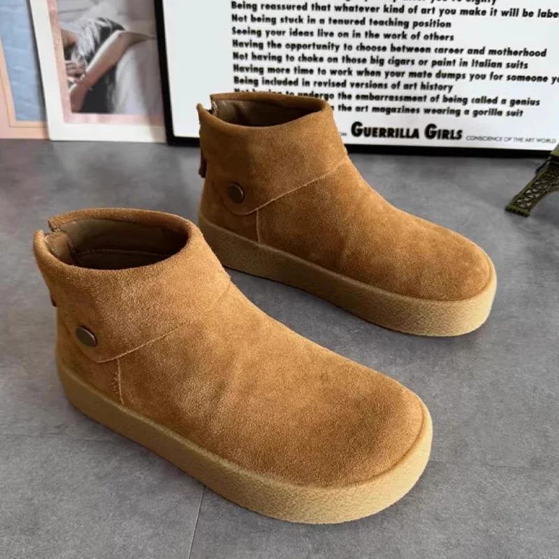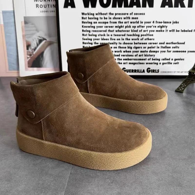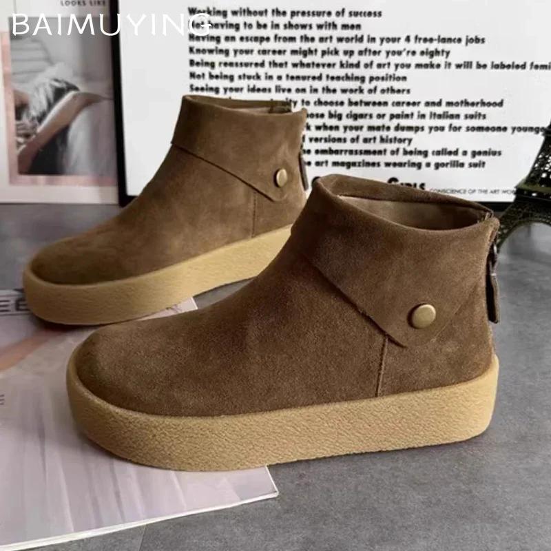 Женские ботильоны на плоской подошве из замши на платформе, дизайнерская обувь в стиле ретро 2025 года, трендовая зимняя обувь нового бренда для ходьбы, комфортная классика, Botas De Mujer
