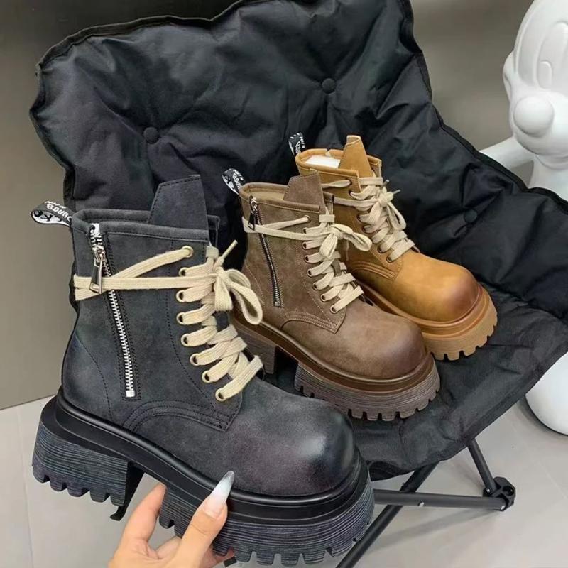Женские ботильоны на толстой платформе, дизайнерская кожаная обувь, зимняя тенденция 2024 года, новые модные короткие зимние мотоциклетные ботинки на молнии Botas De Mujer