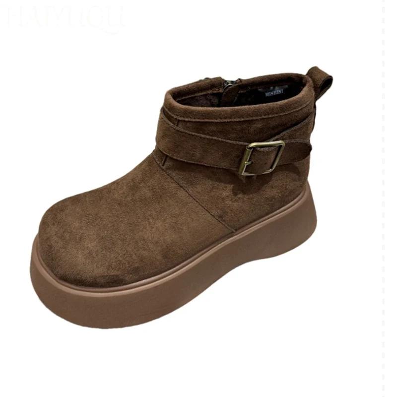 Ботильоны женские на платформе из замши для снега, теплые туфли на плоской подошве, женские зимние трендовые брендовые готические кроссовки 2025 года, мотоциклетные ботинки Botas De Mujer