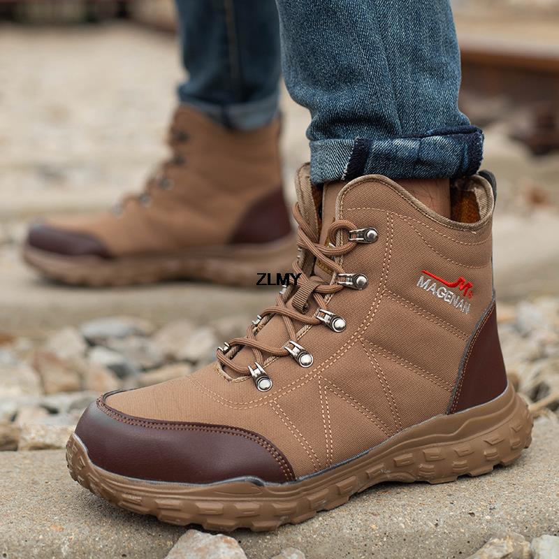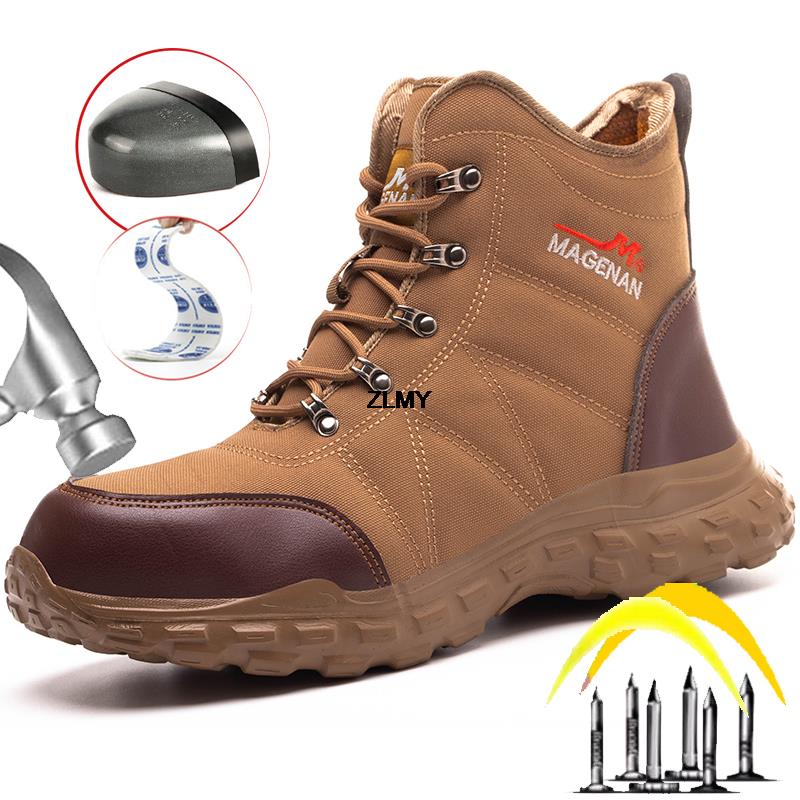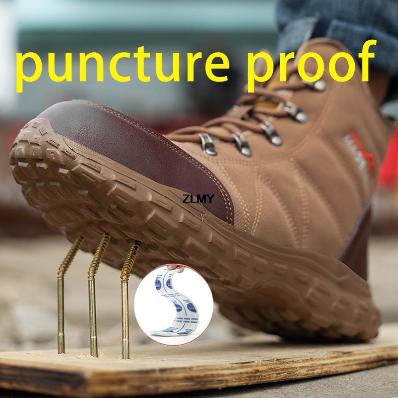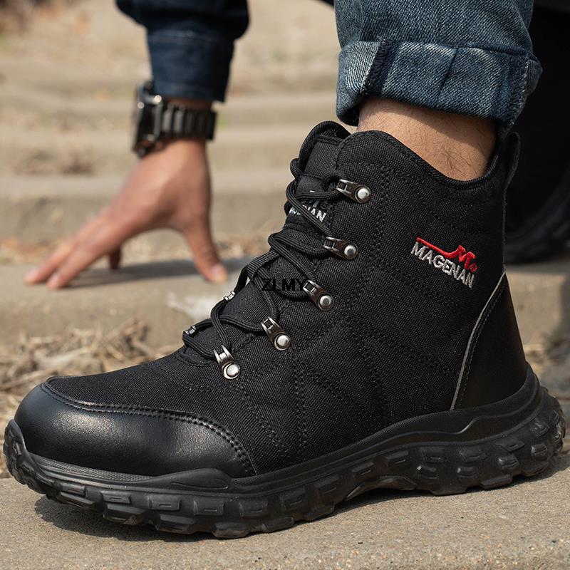 Модная строительная рабочая обувь, мужские защитные ботинки со стальным носком, противоударные и противопрокольные рабочие защитные ботинки для мужчин, высокие защитные ботинки