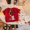 2024 Детский комплект полосатых футболок с коротким рукавом - Летняя одежда в корейском стиле для мальчиков и девочек