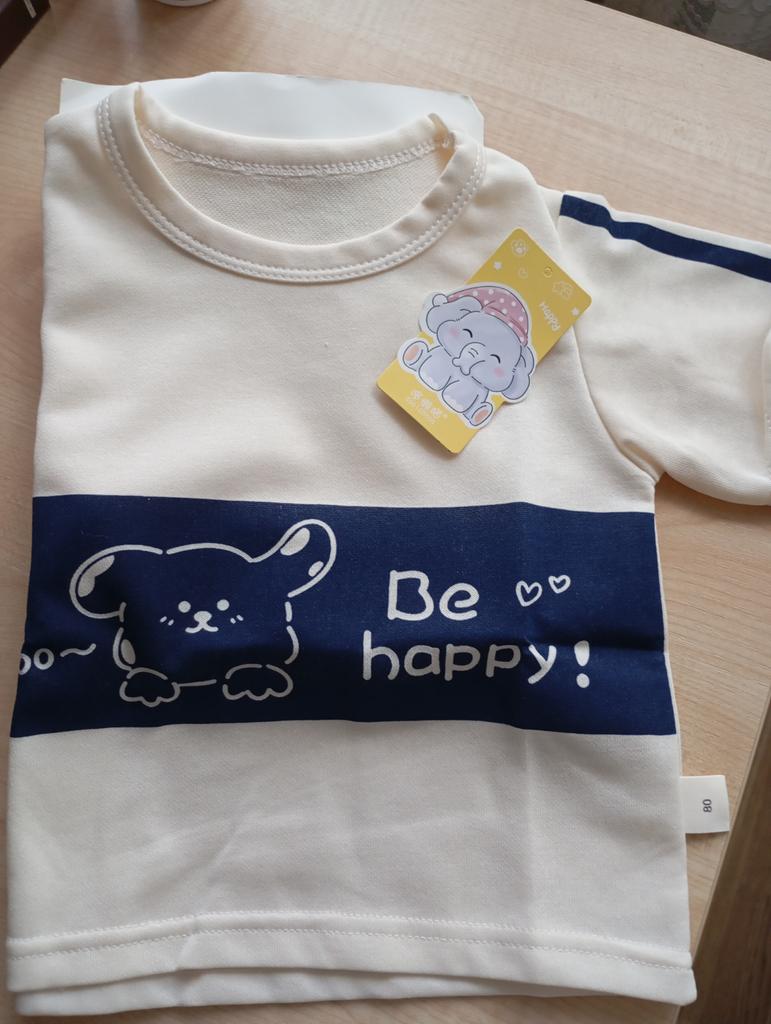 Симпатичный костюмчик. На год, я думаю, будет как раз. Немного пахнет. После стирки, по идее, запах должен уйти. Конечно не 100℅х/б, ну тонкий и лёгкий. Благодарю🙏