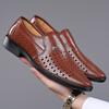 Модная мужская повседневная обувь из коровьей кожи, летние сандалии с вырезами, дышащие черные деловые туфли, туфли-лоферы без застежек для мужчин
