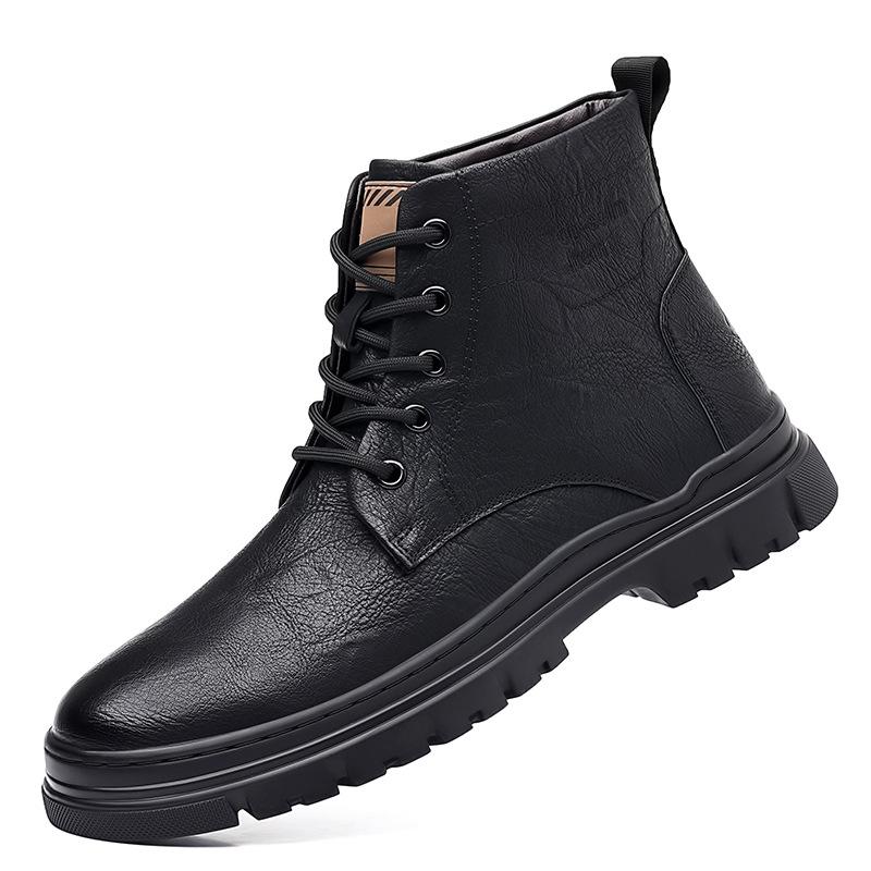 Модная мужская обувь 2024 года, новые осенне-зимние теплые кожаные ботинки с толстой подошвой и хлопком в британском стиле, модные короткие рабочие ботинки для мужчин