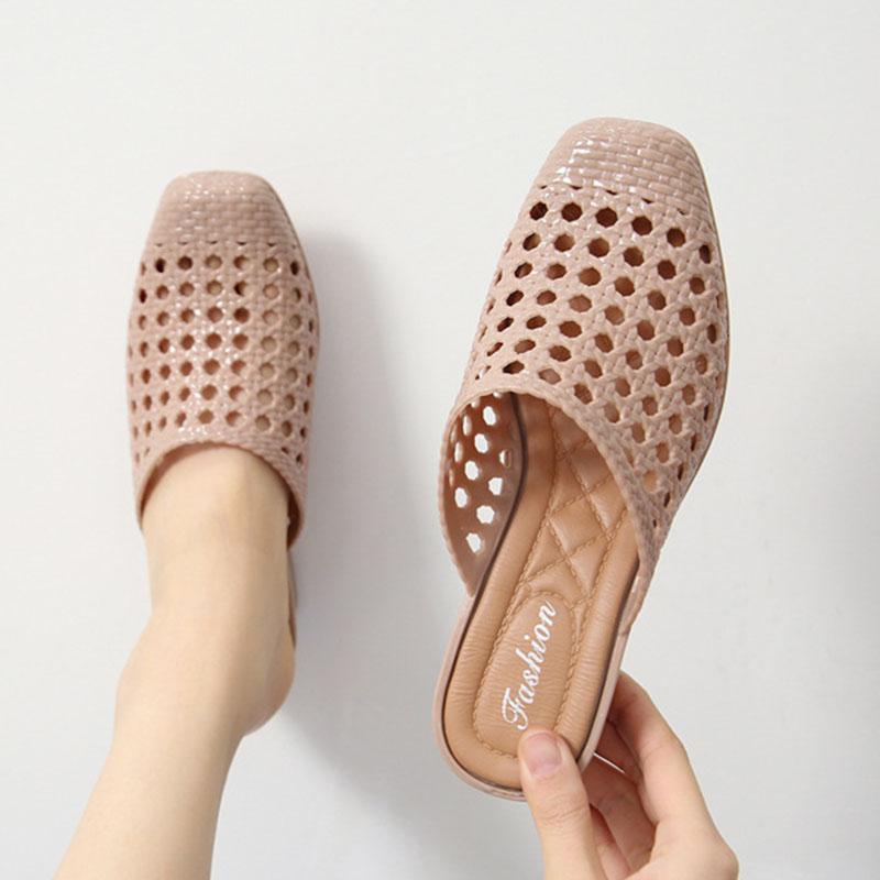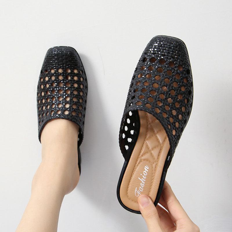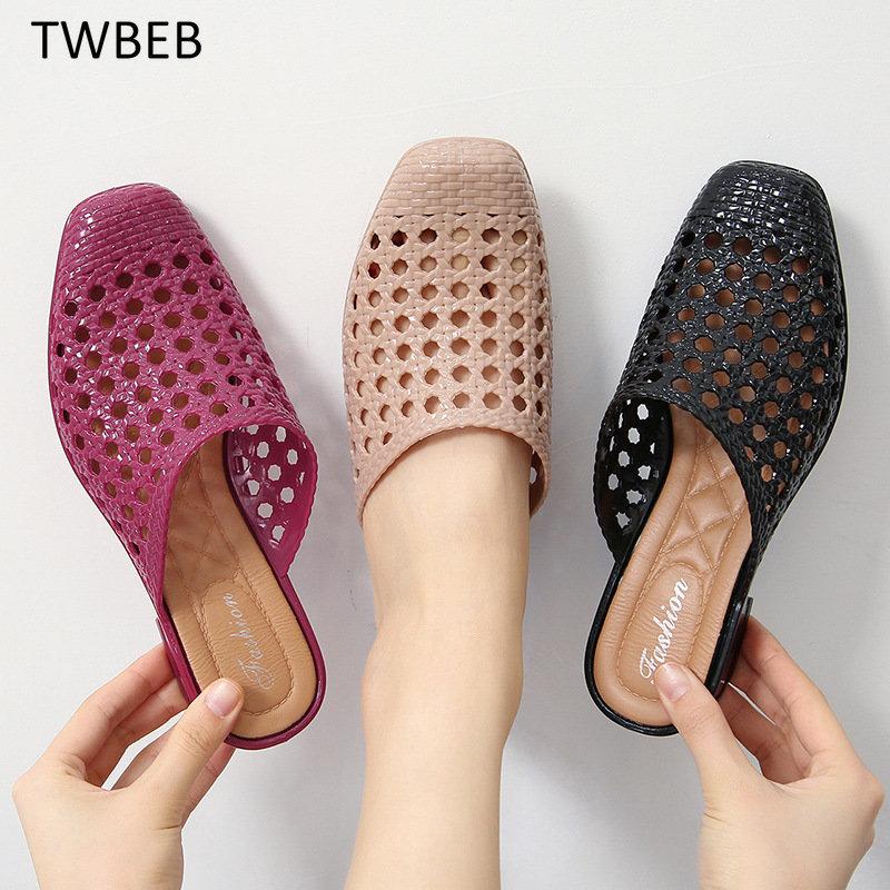 Модные женские пляжные туфли, тапочки, мягкие женские сандалии, летняя обувь на полых каблуках, черный, абрикосовый, красный, прямая продажа