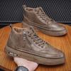 Модные мужские кожаные ботинки 2024 года, зимние теплые ботинки на платформе с короткими шнуровками, модные новые повседневные ботинки для мужчин, рабочие ботинки