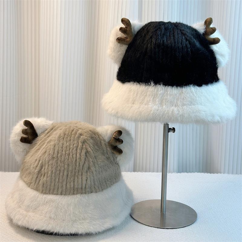 Зимняя женская плюшевая цветная оленьая ушка теплая женская повседневная рыбацкая шапка