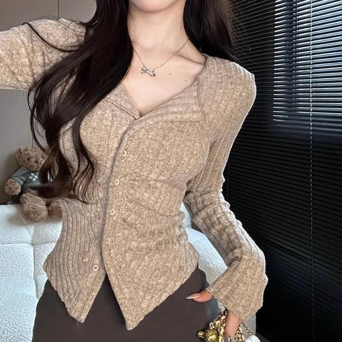 Чистый ветер женская одежда ранняя осень новый кардиган с длинными рукавами блузка чтобы скрыть живот мясо трикотажная нижняя рубашка чтобы показать худых женщин