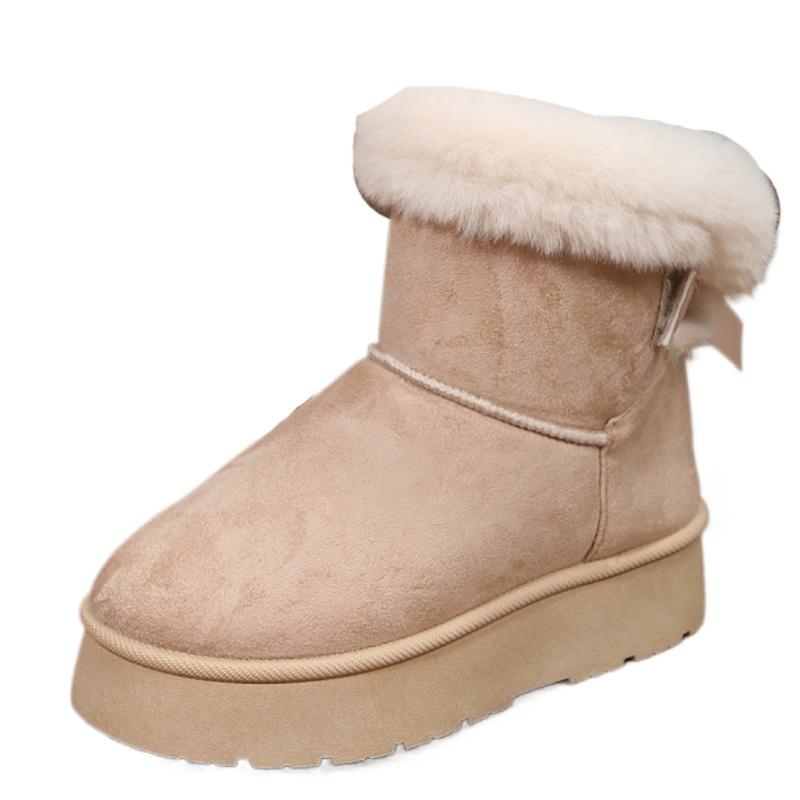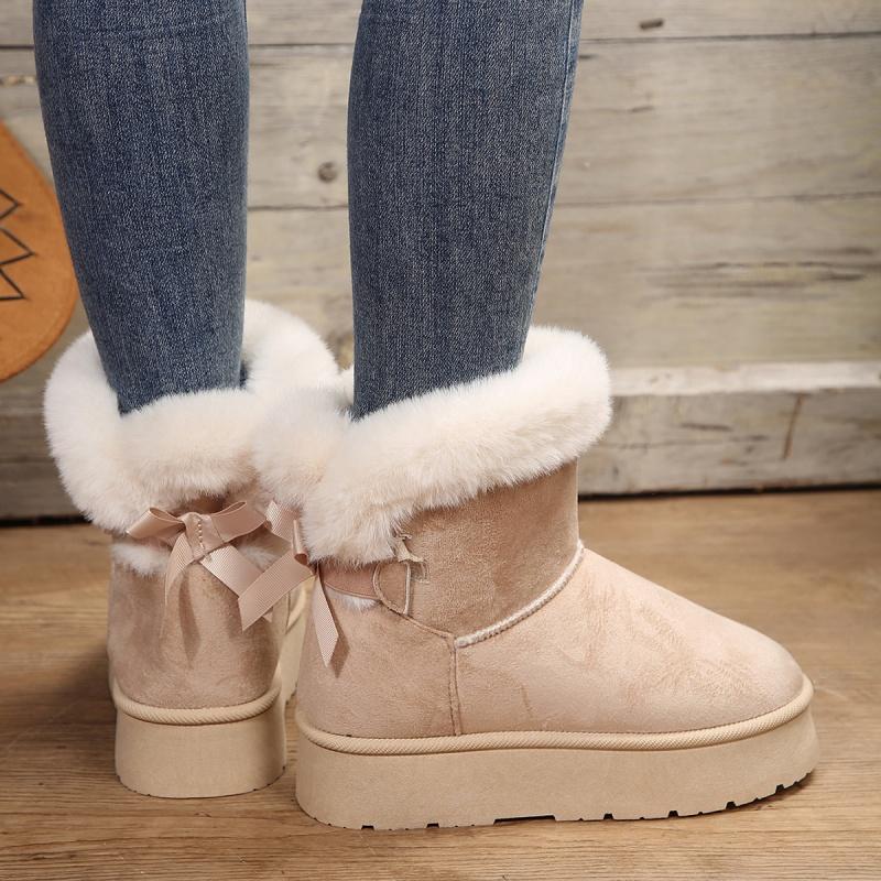 Ботильоны женские на плоской платформе с бантом, меховые, зимние, теплые, брендовая обувь 2025 года, тренд, короткие, плюшевые, гладиаторские, повседневные, замшевые, зимние, ботинки женские