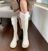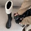 Женские зимние сапоги на платформе до колена, меховые хлопковые туфли «Челси» на толстом каблуке, тренд 2024 года, зимние кожаные готические плюшевые теплые ботинки Mujer