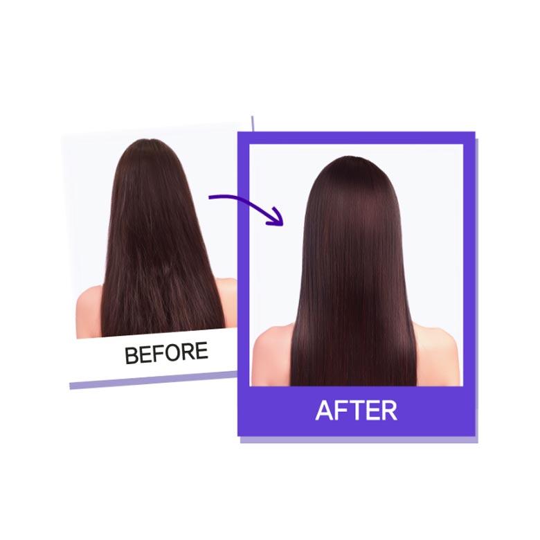 Содержит запатентованные ингредиенты, которые выравнивают поверхность волос и усиливают их блеск.