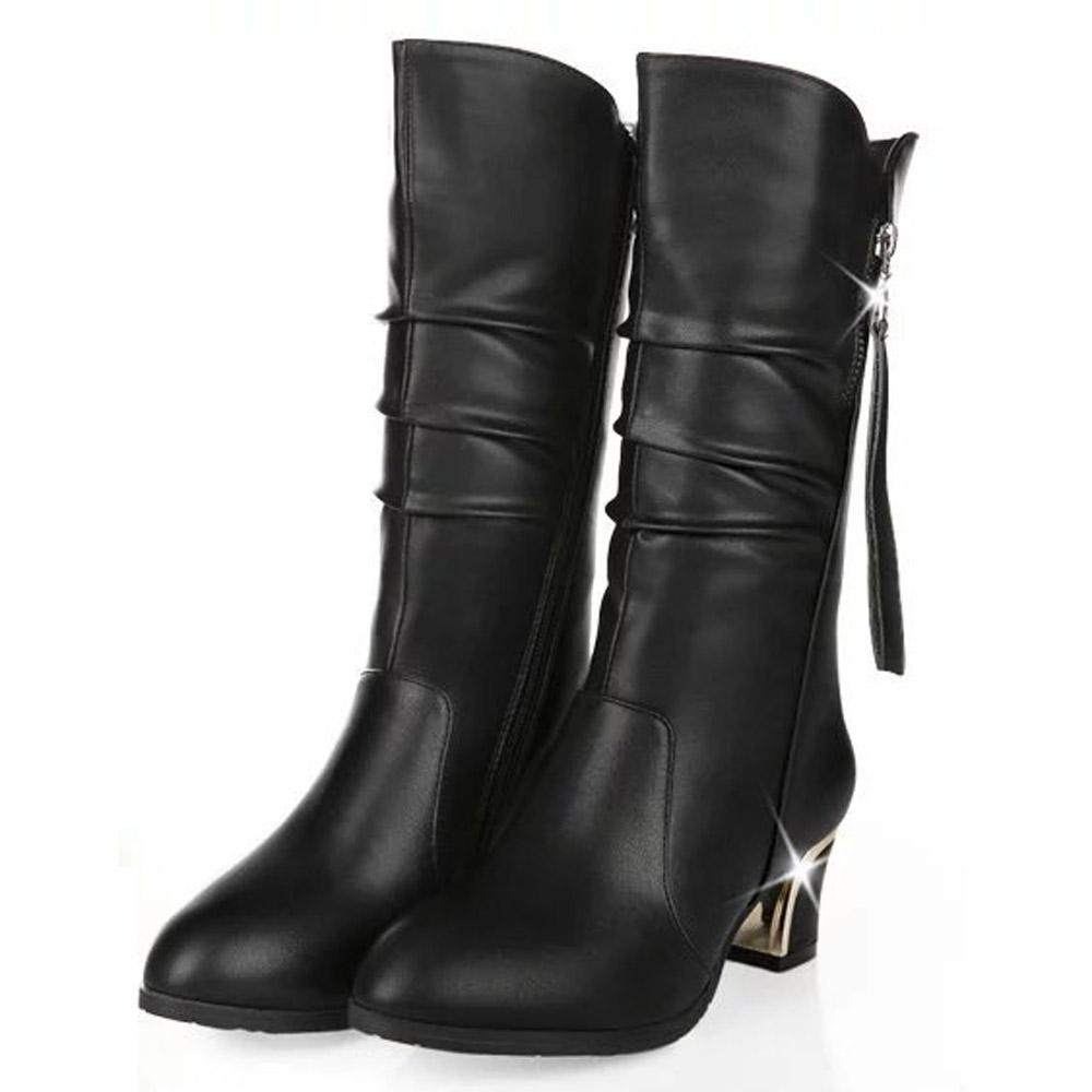 Модные Новые Зимние Сапоги Женская Обувь Женские Сапоги до Середины Икры на Толстом Высоком Каблуке с Круглым Носком на Платформе Однотонные Черные Женские Сапоги RTG789 — купить товар онлайн с бесплатной доставкой по всему миру!